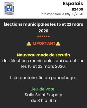 INFO : Elections municipales les 15 et 22 mars 2026